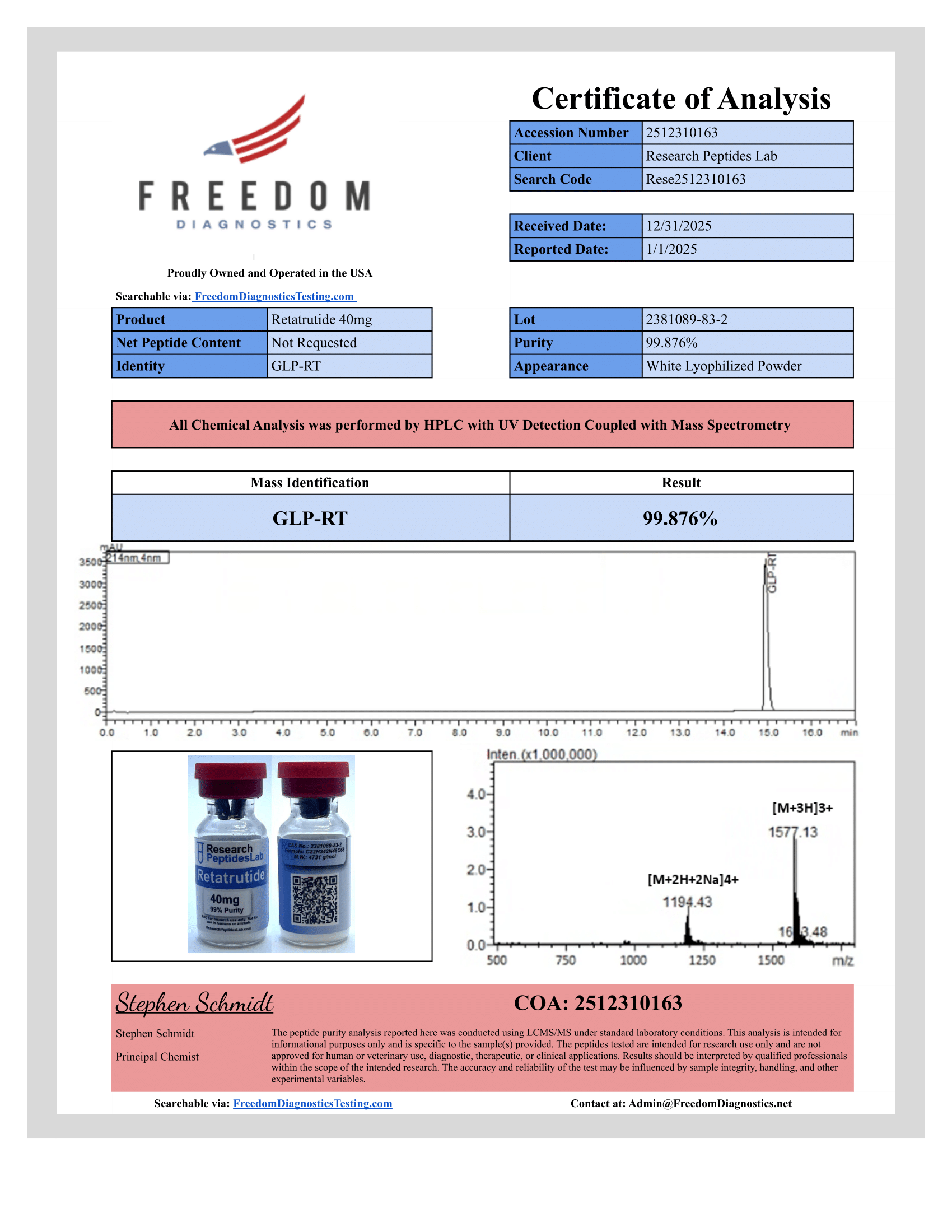 Every batch is independently tested for purity and identity. Download COAs for all documented products.